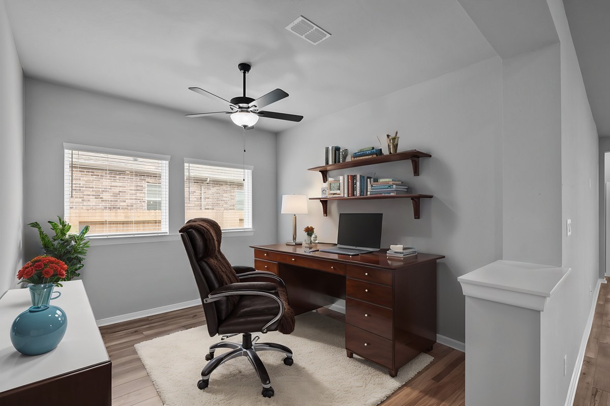 The open-concept living spaces fill with gentle sunlight and your inspired design style. bring your dreams of a home office, art studio, or family movie theater to life in the versatile study.