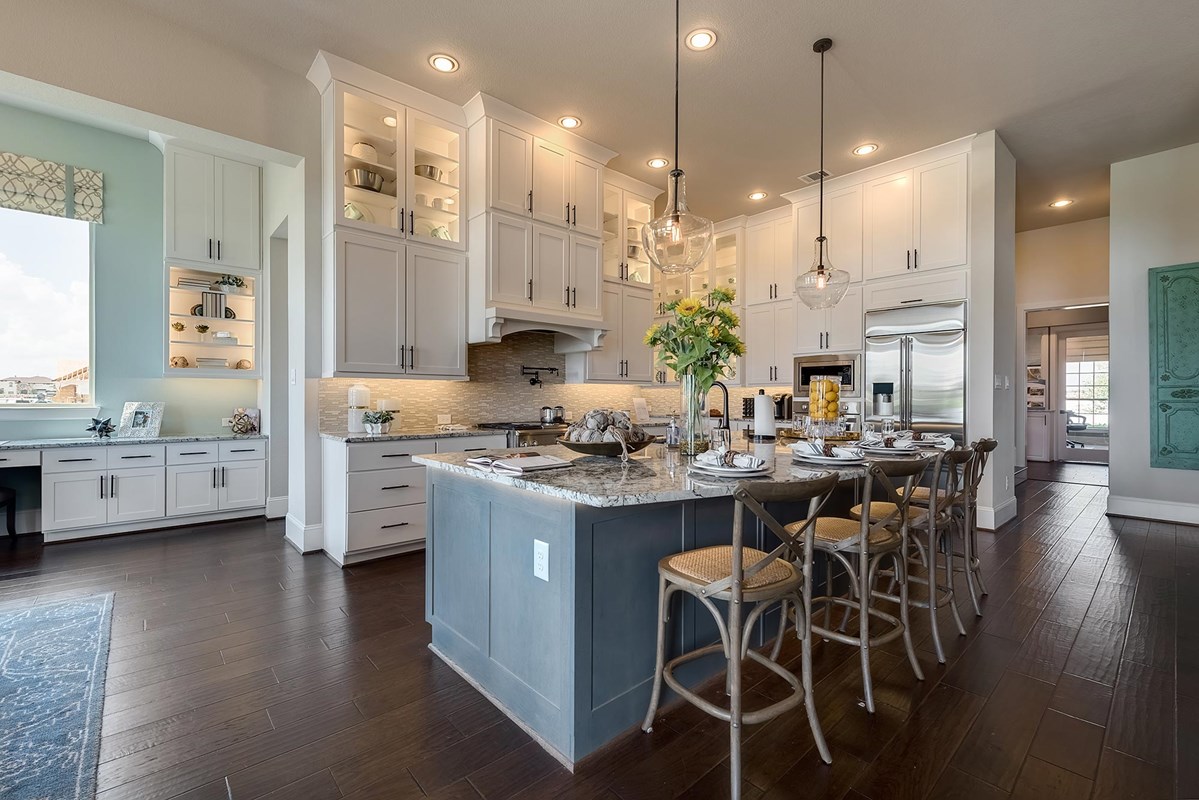 The chef’s specialty kitchen provides a social gathering island, butler’s pantry, and a delightful breakfast nook. The deluxe 3-car garage provides ample storage space to make seasonal decorations and recreation equipment easy to retrieve when needed.
