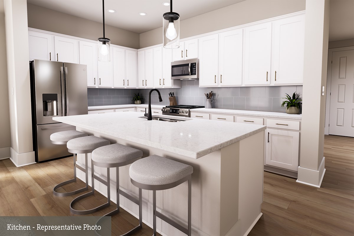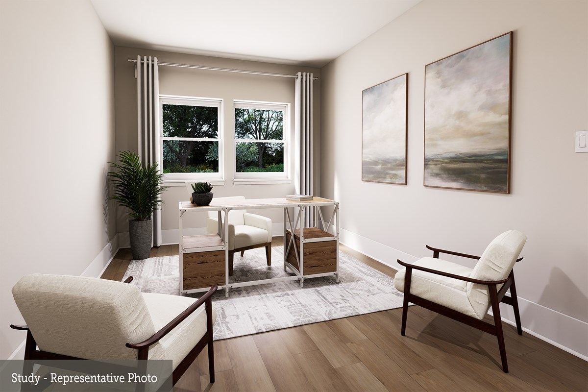 Gather around the kitchen island to enjoy delectable treats and celebrate special achievements. An open study, covered porch and upstairs retreat provide ample space to celebrate together and pursue individual hobbies.