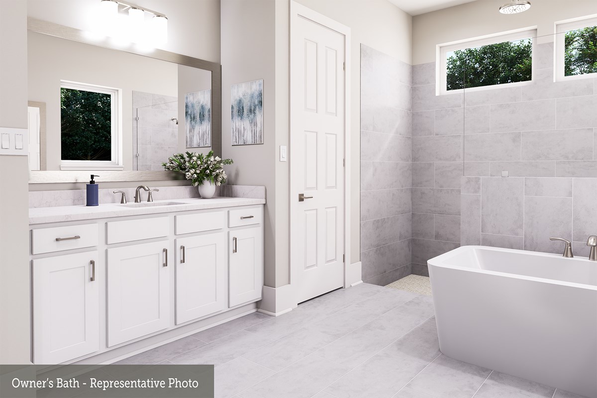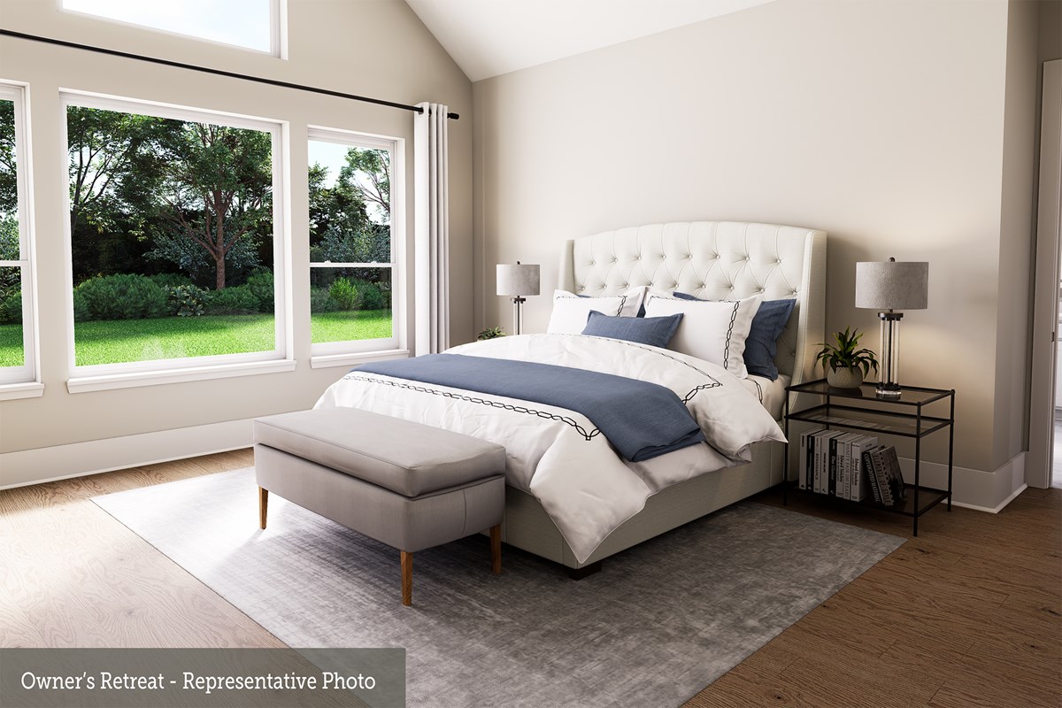 It’s easy to wake up on the right side of the bed in the Owner’s Retreat, which includes a serene en suite bath and paired walk-in closets connected to the utility room. The main-level bedroom provides plenty of privacy and a place for out-of-town guests while a trio of upstairs bedrooms offer wonderful places for growing residents.