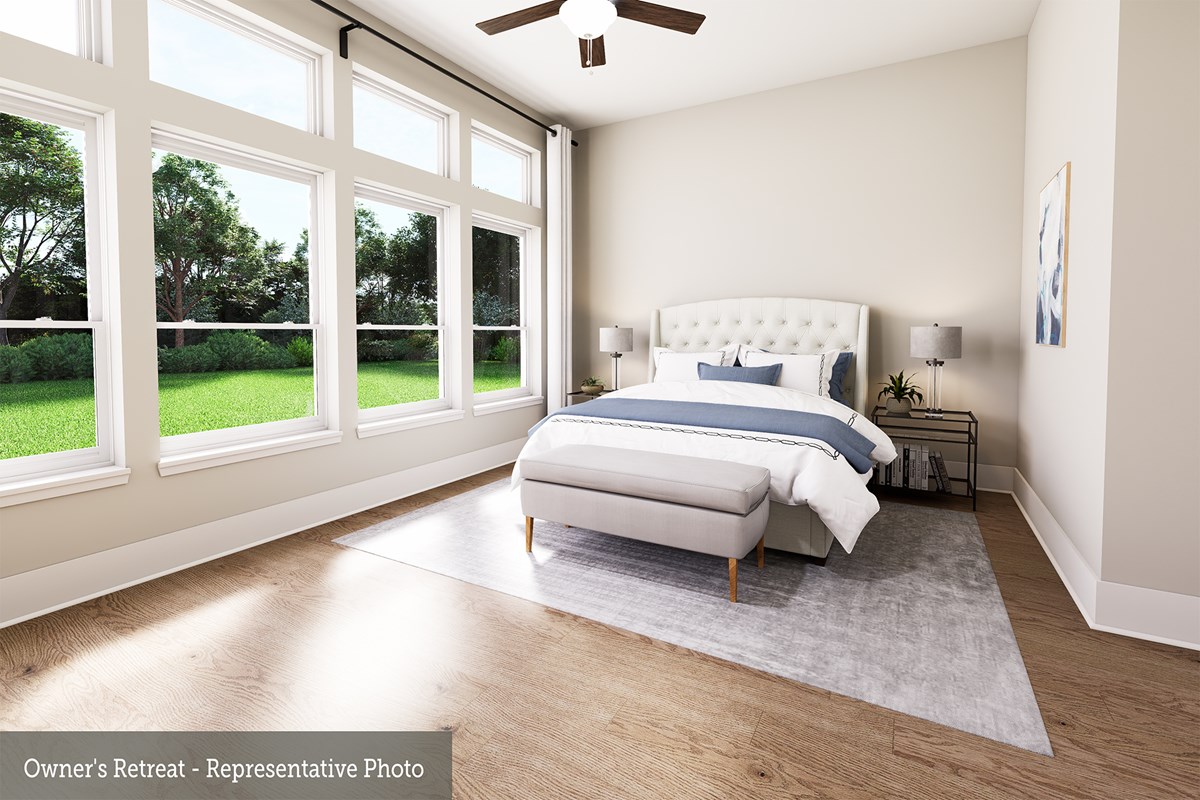 The Owner’s Retreat features a luxury Owner’s Bath and paired walk-in closets to make the start of each day superb. Growing decorative styles will have wonderful places to call their own in the deluxe main-level guest suite and spacious upstairs bedrooms.