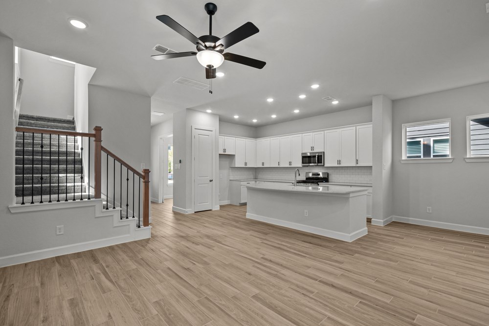 Your open-concept living spaces present an distinguished first impression from the front door and offer superb comforts for quiet evenings together. The gourmet kitchen features a practical and stylish island surrounded by plenty of room for collaborative feast creation.