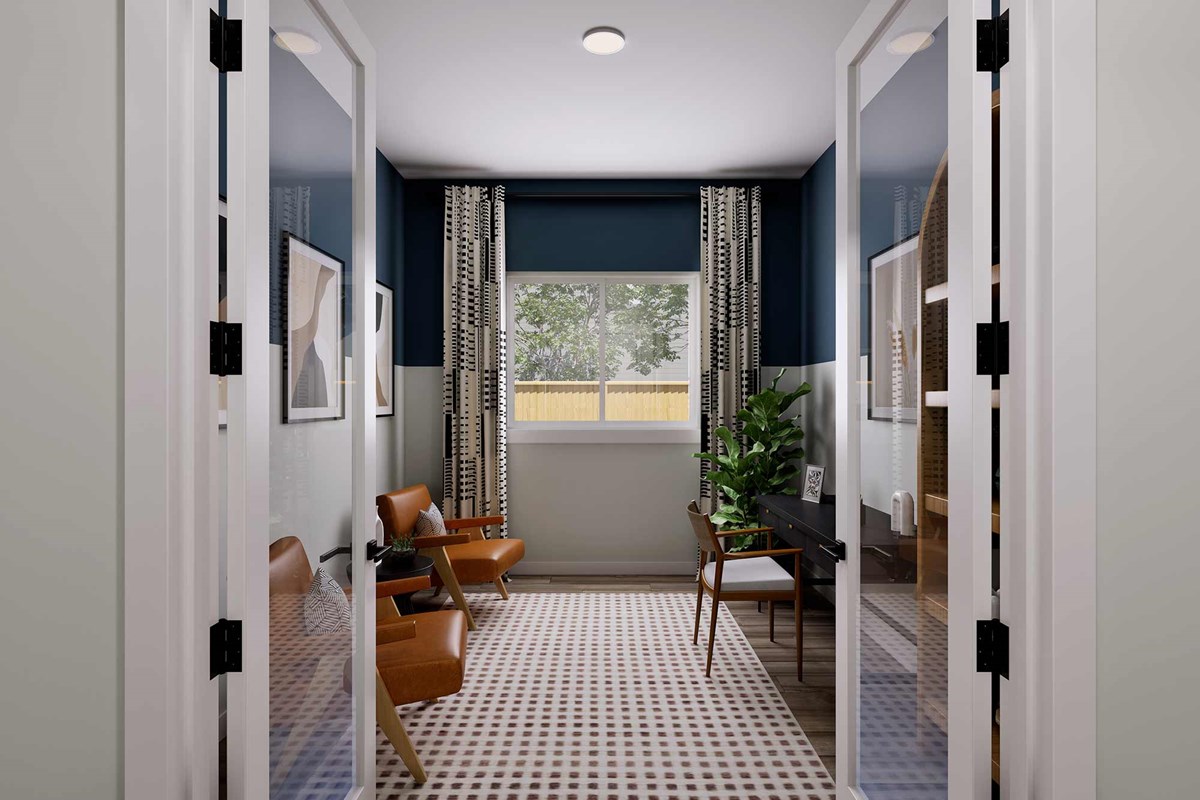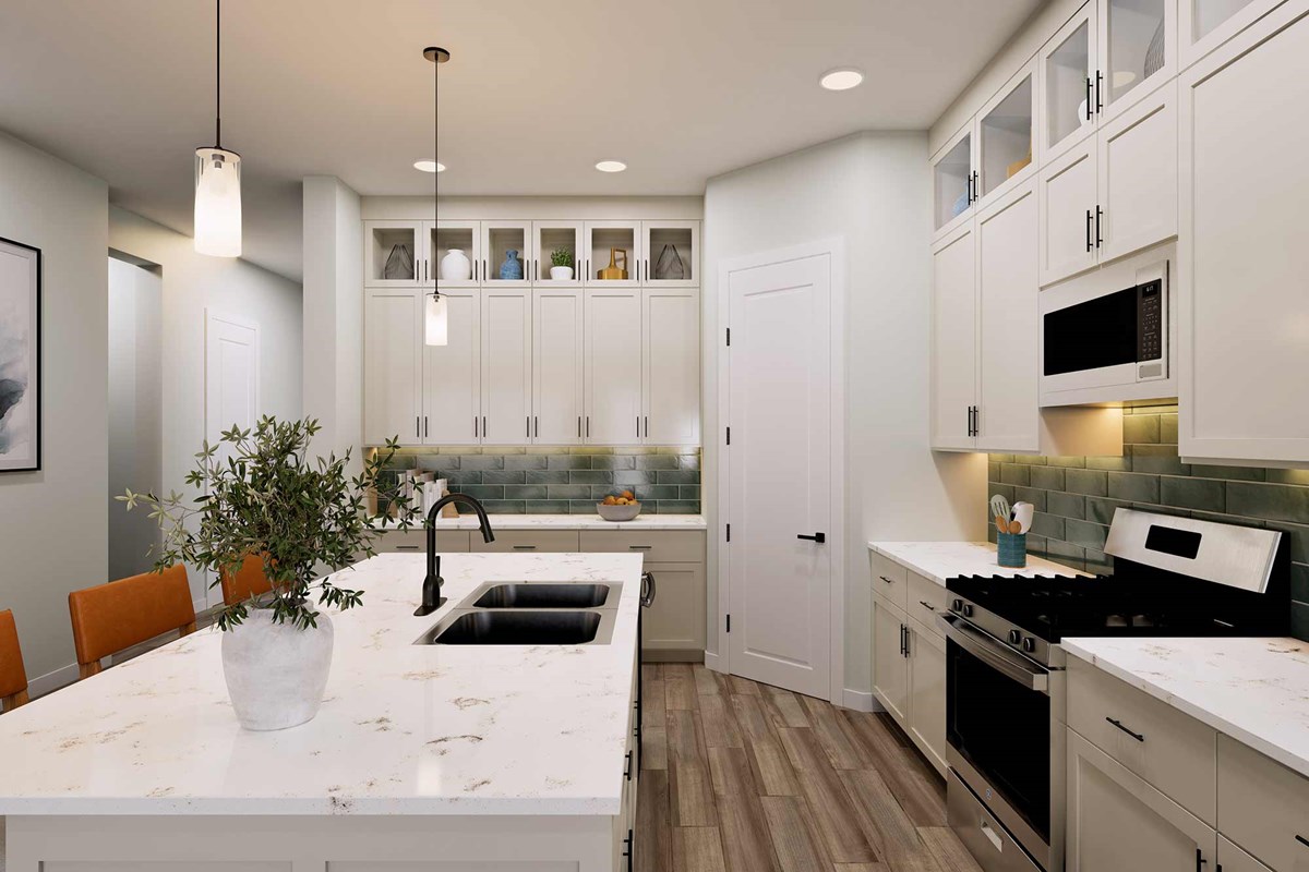 The graceful kitchen provides an easy culinary layout for the resident chef, who can stay in the conversation thanks to the open design. Between the covered porch and front study, this home offers ample opportunities to craft your ideal leisure spaces.