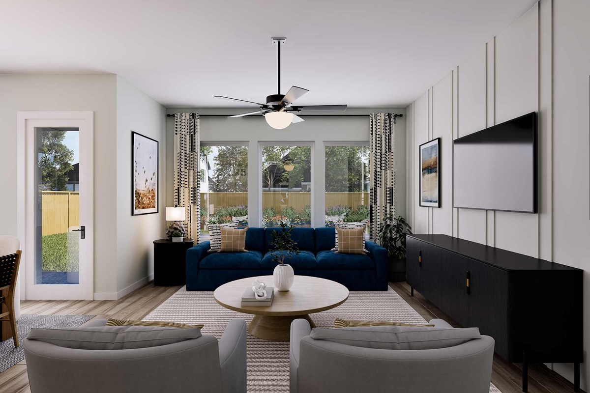 The Willow floor plan by David Weekley Homes in Texas City delights discerning Homeowners and first-time Homebuyers alike. Sunlight shines on the open-concept family and dining spaces thanks to the expertly proportioned and energy-efficient windows overlooking the backyard.