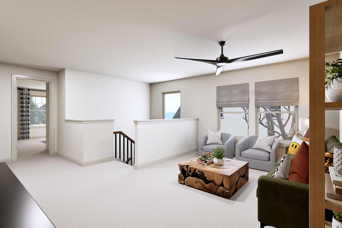 The elegant kitchen showcases an oversized pantry, a center island and a grand view through the sunny living spaces to the covered porch and backyard. The front study and upstairs retreat are ideal places to work from home, enjoy movies and games, or catch up on your reading.