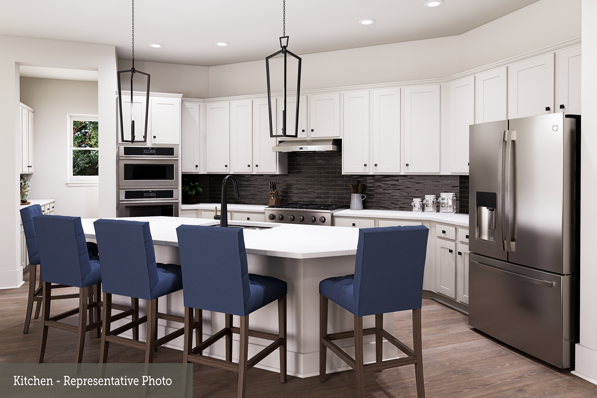 The open kitchen features a center island, butler’s pantry and an expansive view of the gathering spaces for an enhanced culinary experience. A front study, covered porch and upstairs retreat are ready to adapt to your family’s lifestyle.