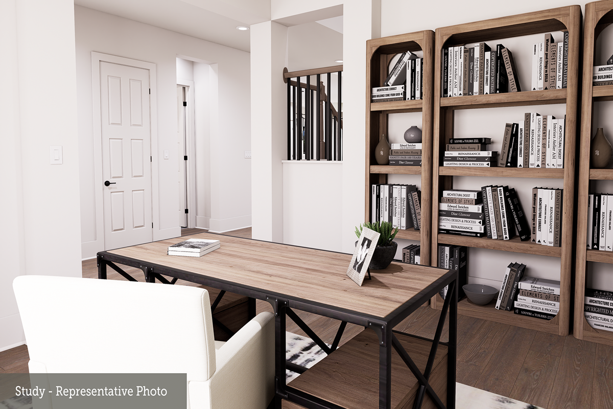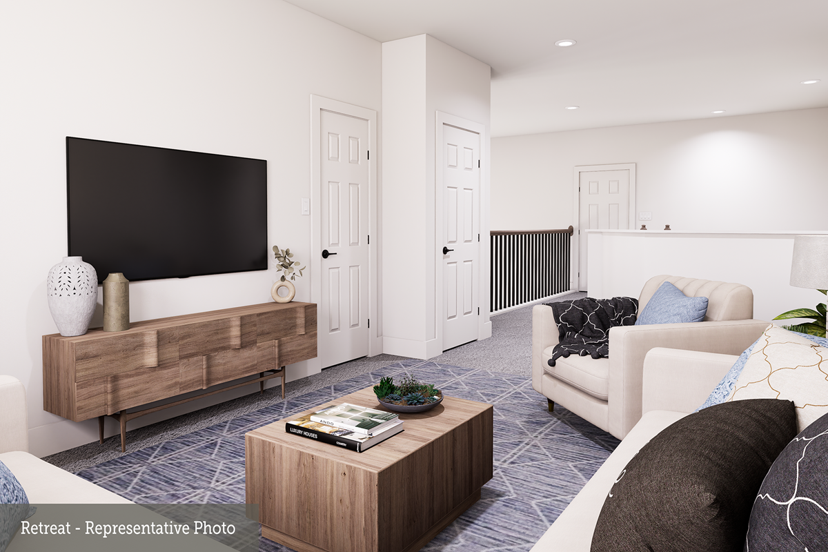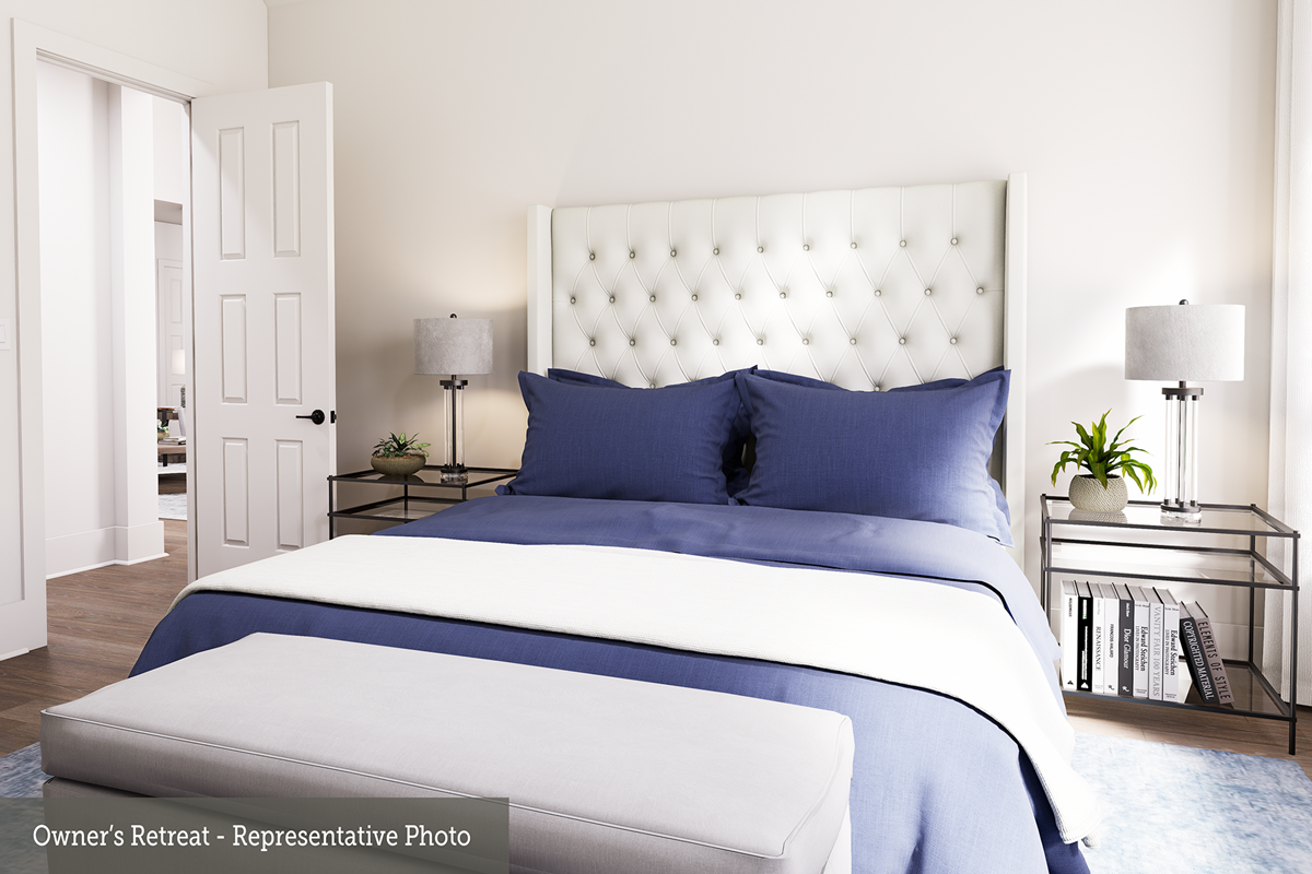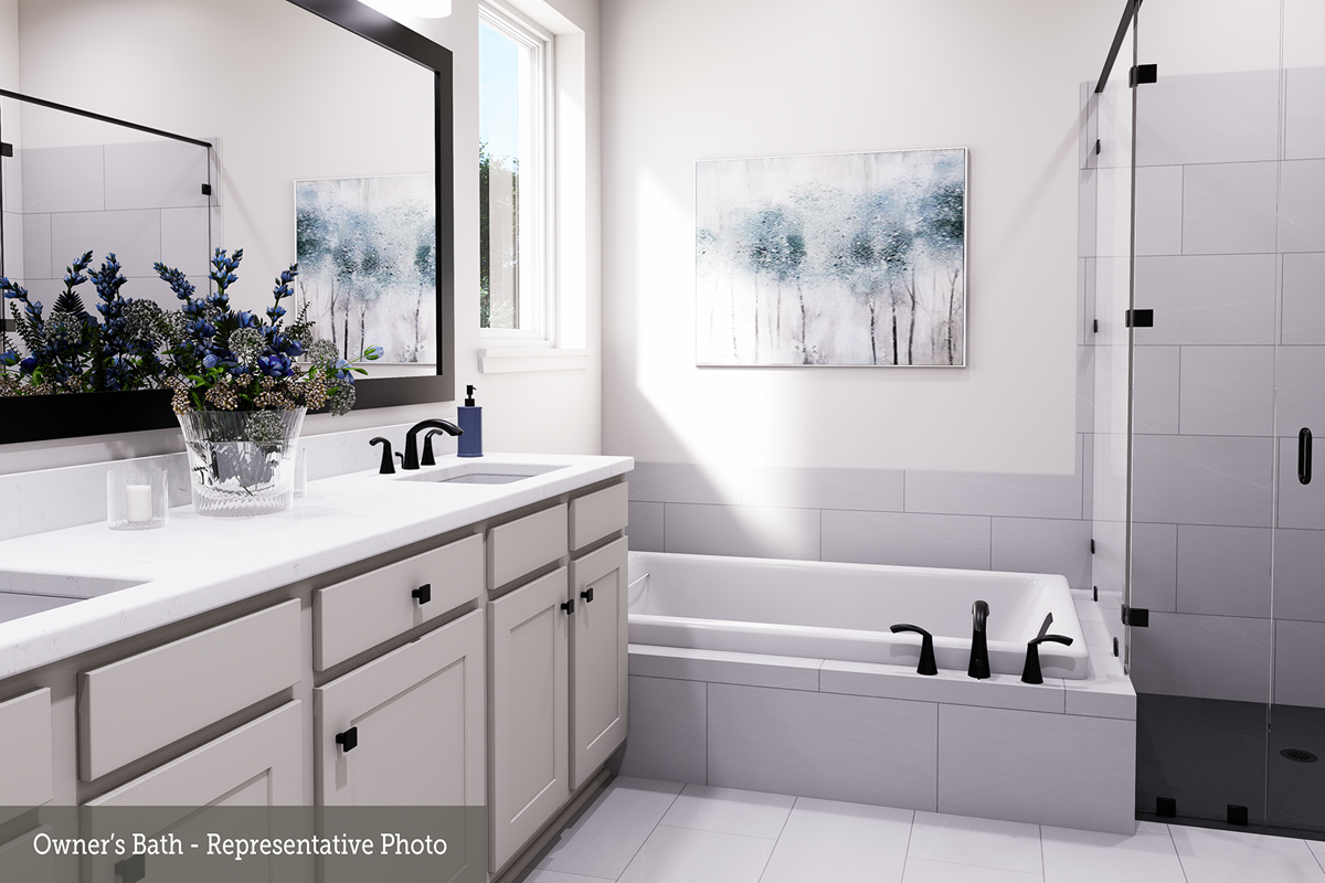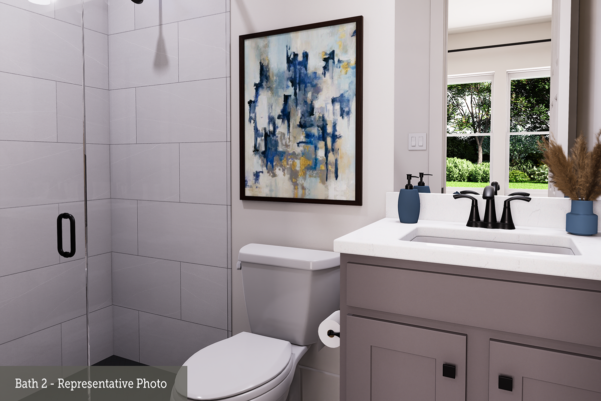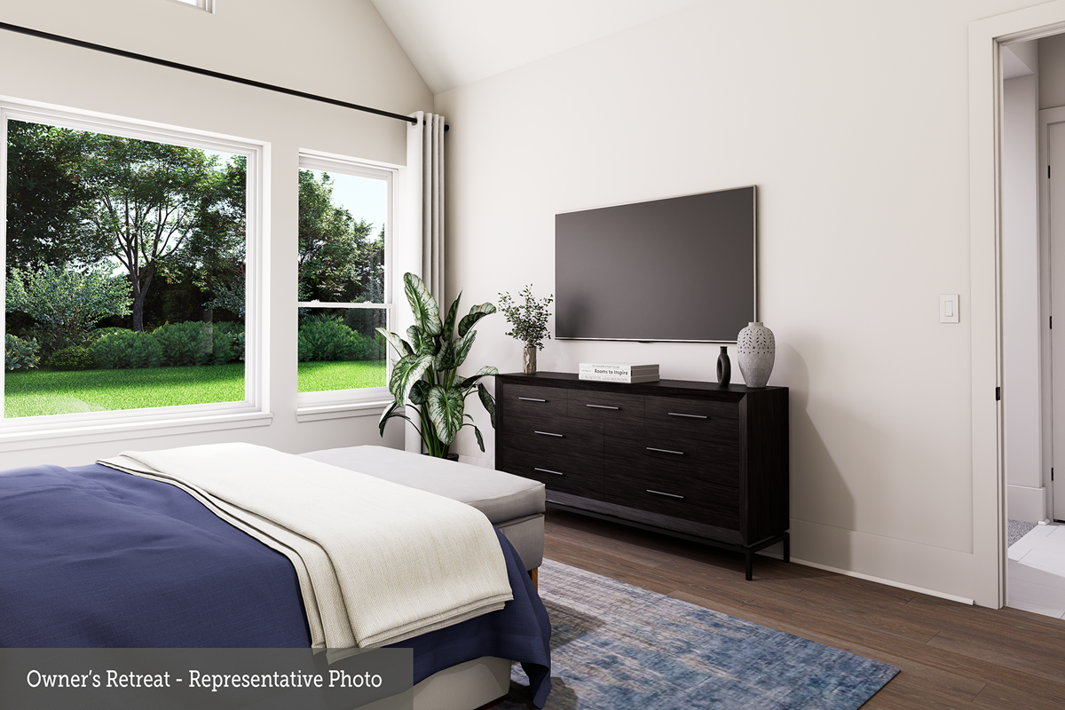 An en suite Owner’s Bath connects to the laundry room and walk-in closet, contributing to the everyday getaway of the Owner’s Retreat. The main-level guest room features an en suite and the upstairs bedrooms share a full bath.