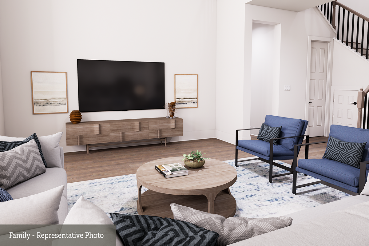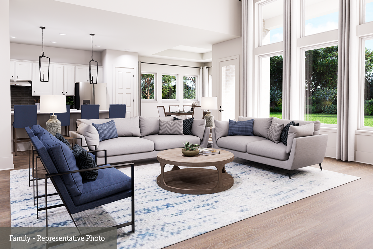 Treat yourself to your dream home with The Sunflower floor plan by David Weekley Homes in Colton. Gentle sunlight allows your personal style to shine under the two-story ceiling in the impressive family room.