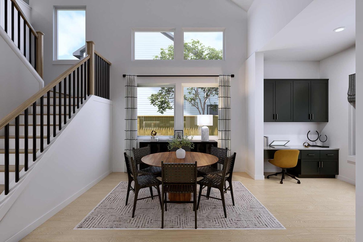 The McCamey floor plan by David Weekley Homes in The Woodlands Hills blends timeless luxury with top-quality craftsmanship to create a uniquely welcoming single-family home. Vibrant space and limitless potential make the open family and dining areas a decorator’s dream.