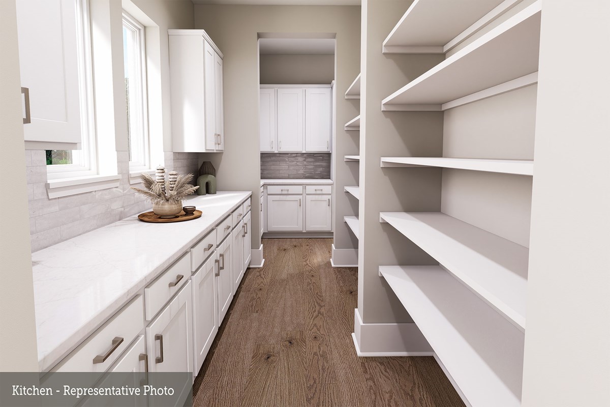 The showroom-style kitchen features open sight lines, a center island and a grand butler’s pantry. A main-level guest suite and pair of upstairs bedrooms make it easy for everyone to have their own space.