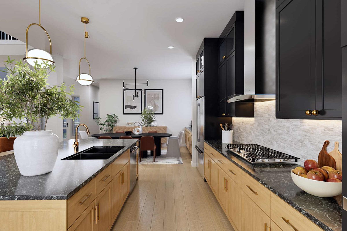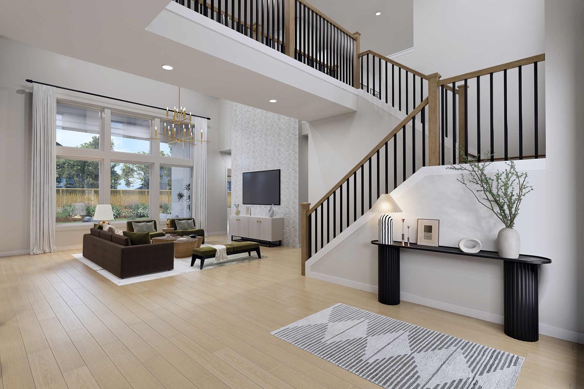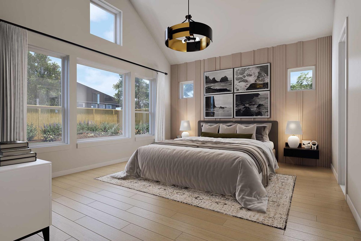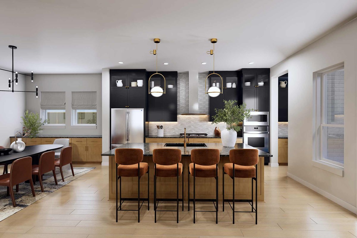 The streamlined kitchen creates an easy culinary layout for the resident chef while granting an open view of the adjacent living spaces. A luxurious en suite Owner’s Bath and walk-in closet contribute to the everyday getaway of the Owner’s Retreat.