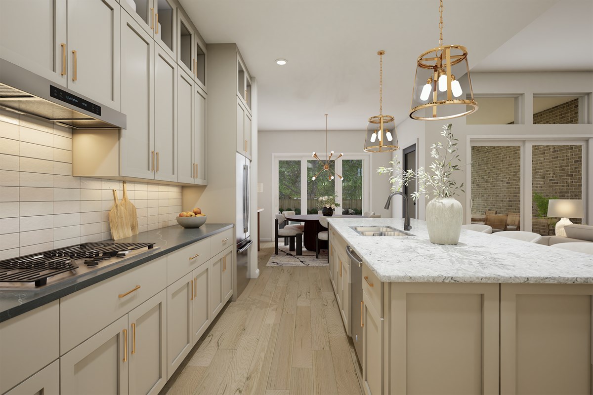 Attention to detail and expert design are evident throughout The Presidio by David Weekley Homes floor plan in Windsong. Effortless style and elegant design pair perfectly with your culinary masterpieces in the tasteful kitchen, featuring an oversized pantry and out-of-the-way prep area.