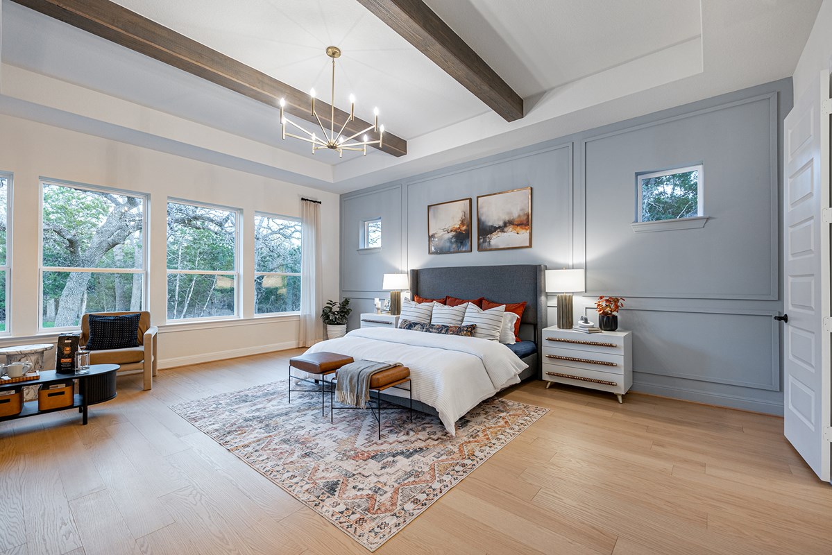 Withdraw to the easy serenity of the exquisite Owner’s Retreat, featuring a walk-in closet and a contemporary en suite bathroom. Create Your Dream Home with this sprawling new home in Bulverde, Texas.
