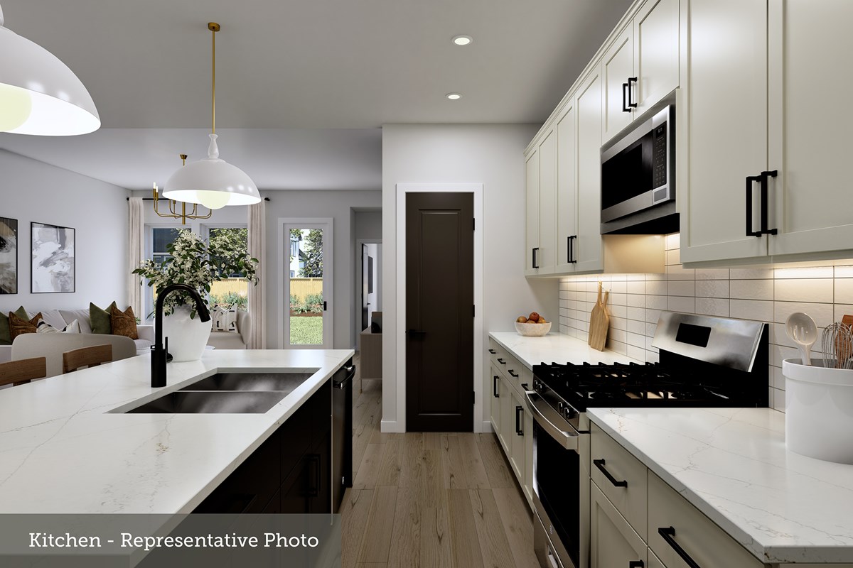 The graceful kitchen provides an easy culinary layout for the resident chef, who can stay in the conversation thanks to the open design. The upstairs retreat offers ample space for entertainment, crafts, games and leisure.