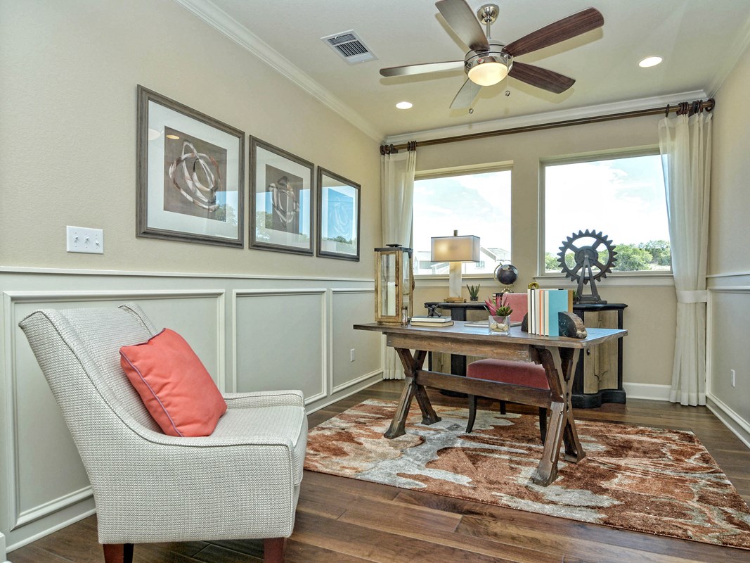 Elegance and sophistication combine with the genuine comforts that make each day delightful in The Jewel lifestyle home plan. Gather the family around the gourmet kitchen’s full-function island to enjoy delectable treats and celebrate special achievements. Your Owner’s Retreat features a superb en suite bathroom and an enviable walk-in closet. Each spare bedroom offers a wonderful place for individual decorative styles to shine. Your open-concept floor plan fills with natural light and boundless interior design potential. Enjoy refreshments and good company in the breezy leisure of your covered patio. Your ideal special-purpose rooms are waiting to be crafted in the incredible FlexSpaceâ„ of the downstairs study and upstairs retreat. Build your future together in this magnificent new home plan.