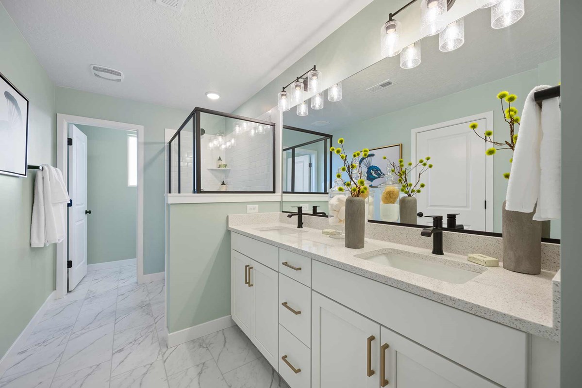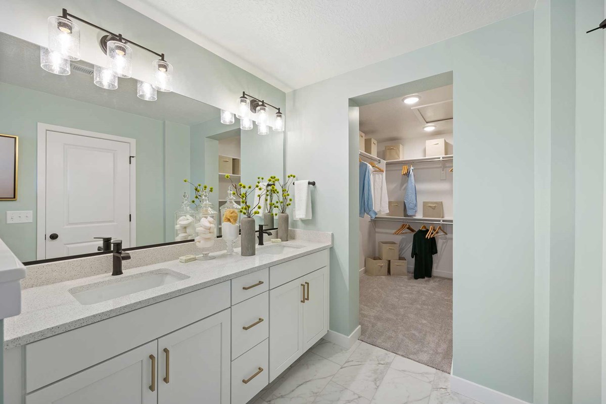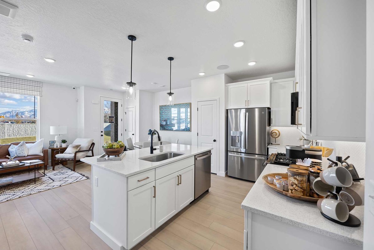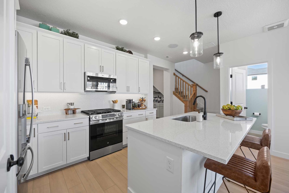 The streamlined kitchen creates an easy culinary layout for the resident chef while granting an open view of the adjacent living spaces. An en suite Owner’s Bath and sizable walk-in closet contribute to the everyday getaway of this Owner’s Retreat.
