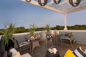 If you’re interested in becoming an outdoor hostess, select a table and chair set that meets your needs, with an umbrella to cover you on those ultra-sunny days.