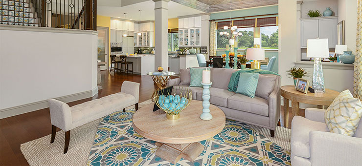 Oversized comfortable couches fitted with slip covers tend to conjure up images of casual beach living. Combine them with wicker chairs and a jute rug for a relaxing shore look. Take it a step further with matchstick blinds and navy or coral accent curtains hung close to the ceiling and you can practically hear the waves crashing.