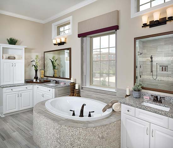 With just a few simple touches, you can fashion a spa-like escape. Start by making sure the countertops in your bathroom are neat and clean, which means placing items like the hair dryer or makeup in drawers and cabinets. Utilize embellished boxes to tuck everyday essentials in a decorative container for easy access. Another way to craft a restful retreat is with luxurious white towels rolled up and placed in a basket. Add an element of relaxation by splurging on nice soaps, lotions and a plush bathrobe.
