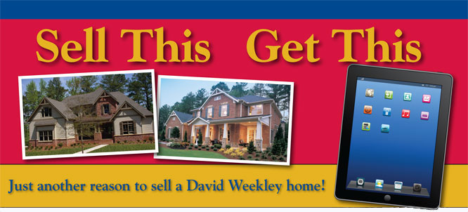 See a David Weekley Homes Sales Consultant for complete details. Not valid with any other offer or previously written contracts. Tablet give away will be awarded to Realtor who sells a David Weekley home in the Atlanta division of David Weekley Homes from September 1, 2012, through December 31, 2012 (the Program Period). Realtor will receive Tablet within 10 days of closing. Value of Tablet not to exceed $500. Cash will not be given in lieu of Tablet. Any home purchased by a Realtor for any purpose other than owner occupancy will not be counted toward incentive. Realtor is responsible for any income taxes on the bonus, and any other costs incurred in connection with same. David Weekley Homes reserves the right to terminate program or change rules at any time. Prices, plans, dimensions, features, specifications, materials or availability of homes or communities are subject to change without notice or obligation. Illustrations are artist's depictions only and may differ from completed improvements. Copyright © 2012 David Weekley Homes - All Rights Reserved. Atlanta, GA (ATLO47056)