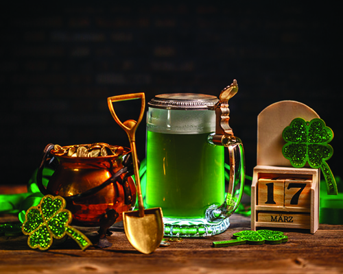 Most St. Patrick’s Day partygoers are quite happy with a chilled mug of beer dyed green with a few drops of food coloring. Raise the bar by opting for the famous Irish black and tan by using a stout Irish beer, topped with a pale ale.