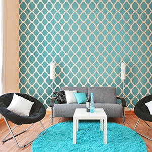 Using paint and an easy-to-use stencil, you can add some drama to your décor by creating a wallpaper-like design on an accent wall.