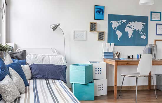 When you were a kid, your idea of cleaning your room probably involved haphazardly stuffing everything under your bed. Guess what? Not much has changed. Help your child get their bags, blankets, shoes and boxes out of the way by placing them underneath the bed. If their twin bed is low to the ground, it’s easy to add up to eight inches with bed risers, allowing sufficient storage space for large items like a trunk. Quick note about bedding, you’ll need to purchase sheets and comforters that are Twin XL, but more importantly, a twin mattress cover. Unless they’re enrolled in the Mattress Academy, their bed is probably going to need a little more cushion for comfort.