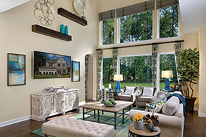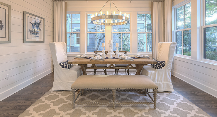The number one rule in minimalism is to simply reduce the amount of décor. A room cluttered with furniture and objects can feel cramped. In areas such as the Family Room, look for opportunities to substitute sofas with smaller seating options like chairs or an ottoman to create more space. Using the bare minimum not only reduces clutter and opens the traffic flow, but creates breathing room for the furniture and makes each piece more special.
